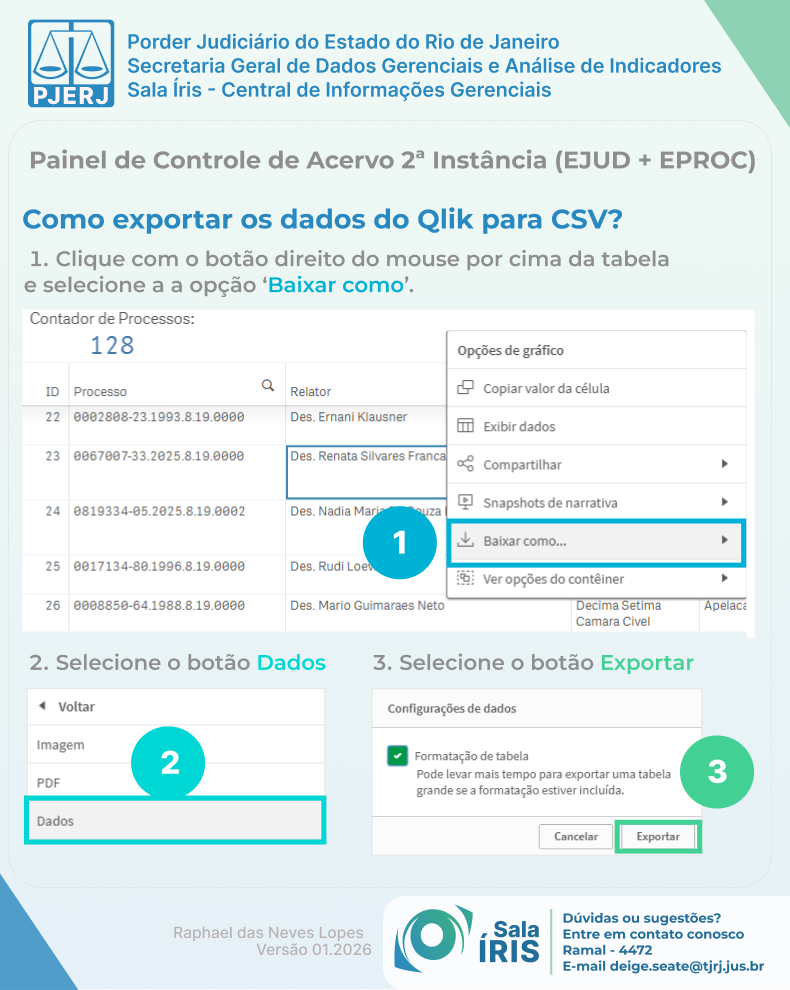 - Como exportar CSV do painel de Controle de Acervo da 2ª Instância