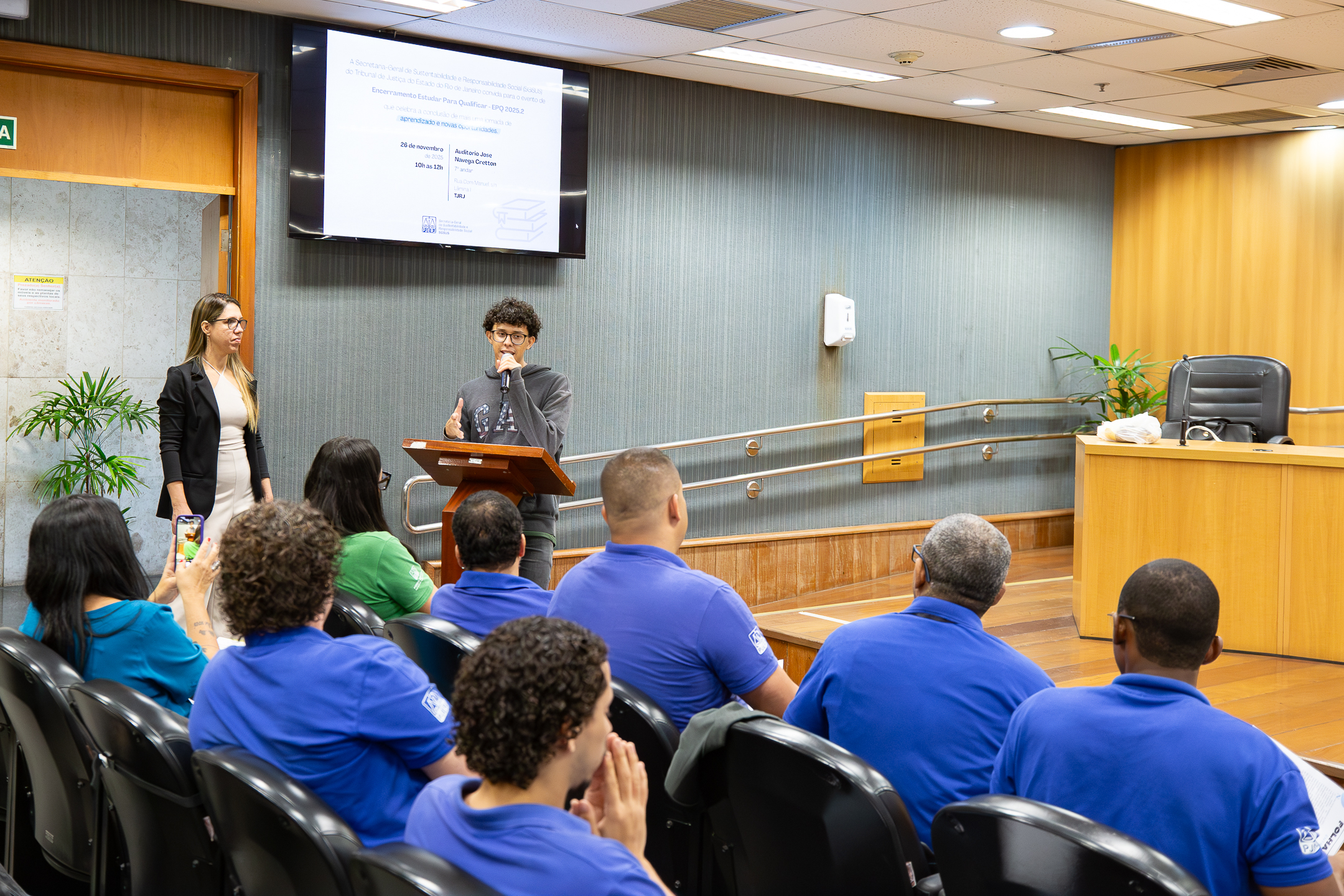 No meio das inúmeras complexidades do dia a dia, é fácil perder de vista a importância do desenvolvimento pessoal em aspectos aparentemente simples, como a leitura e a escrita. No entanto, em um mercado de trabalho cada vez mais competitivo, dominar essas habilidades deixou de ser apenas um requisito básico, tornou-se uma porta de entrada para novas oportunidades. Foi com isso em mente que os 14 integrantes da turma 2025.2 do projeto Estudar para Qualificar encerraram seu semestre de estudos na manhã desta quarta-feira, 26 de novembro. A iniciativa é fruto de uma parceria entre o Tribunal de Justiça do Rio de Janeiro (TJRJ) e a Universidade do Estado do Rio de Janeiro (Uerj) voltada para o aprimoramento das competências de leitura e escrita, além de colaborar na preparação para provas de concursos públicos e para o Exame Nacional do Ensino Médio (Enem), ampliando as chances de inserção e crescimento no mercado de trabalho.