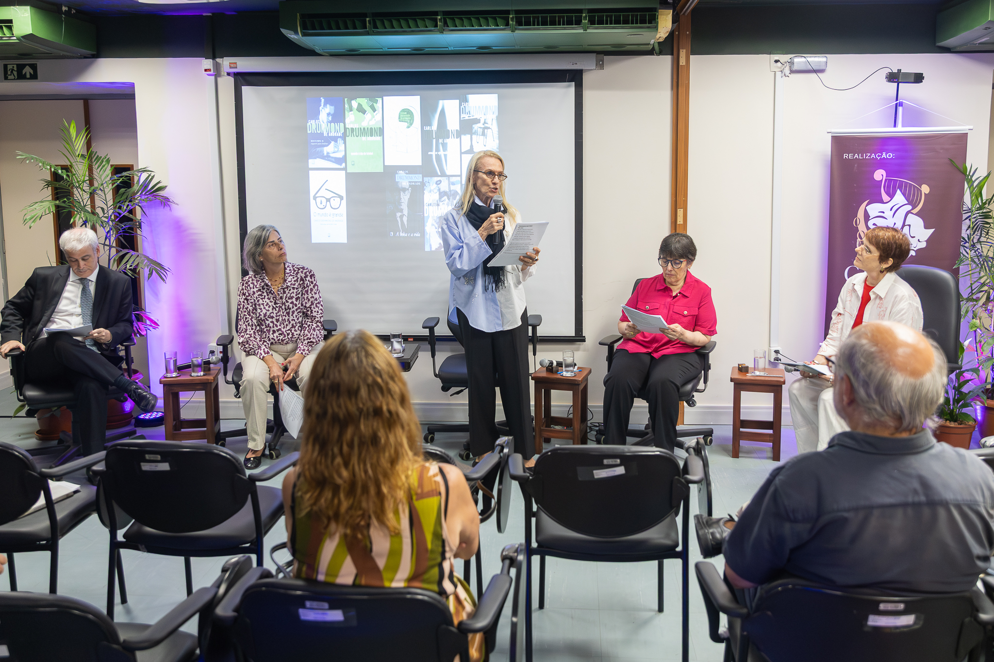 A jornalista refletiu sobre como a leitura faz muito bem à saúde, especialmente ler poesia. Bianca destacou a sensibilidade de Drummond e desejou que essa experiência aproxime ainda mais as pessoas do escritor. “O que a gente quer é que todo mundo leia Drummond. Quase que um plano que organizamos, coletivo, para que todo mundo saia daqui viciado no escritor”, compartilhou.