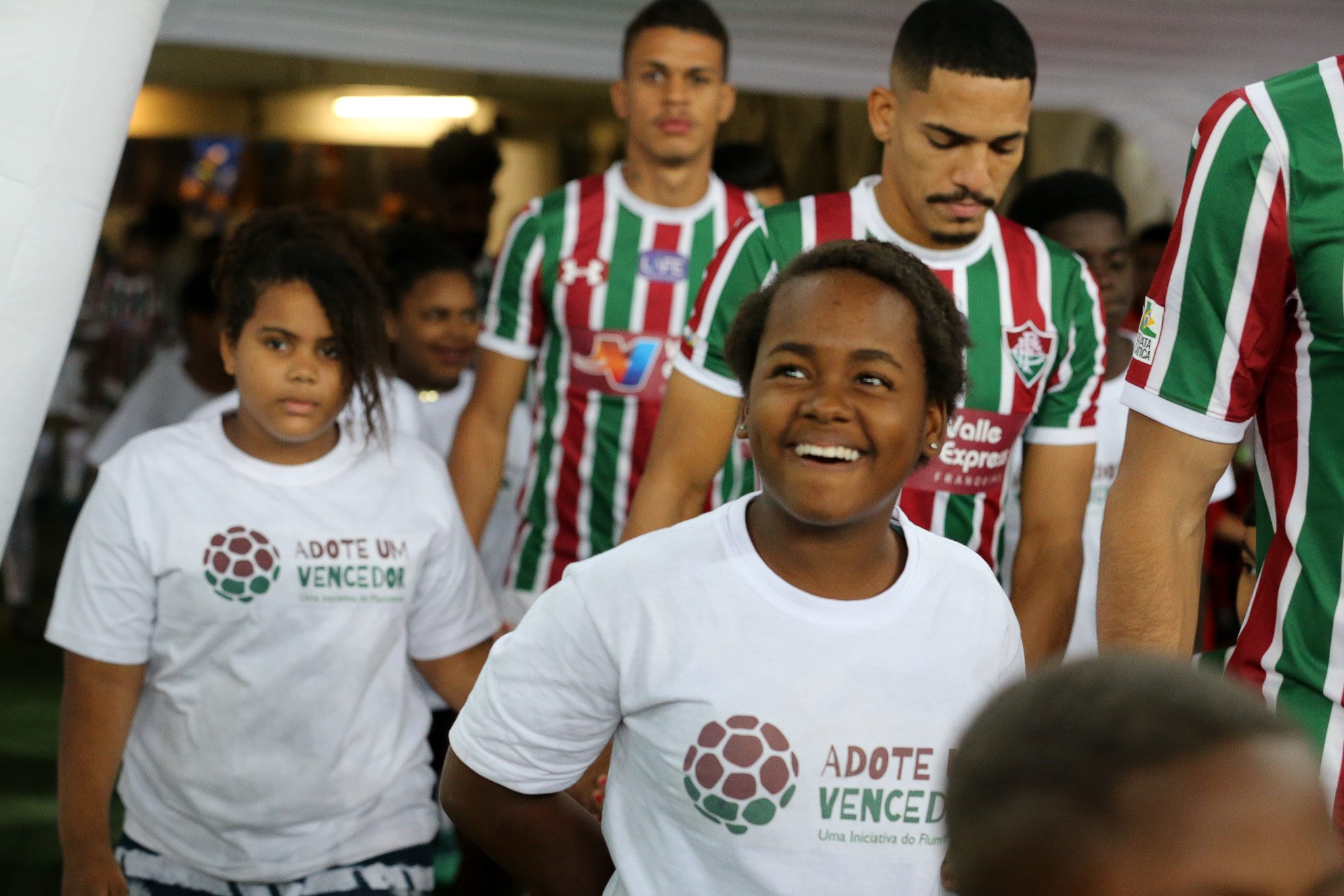 Para alguns pequenos torcedores, a vitória do Fluminense por 2 a 0 contra o Atlético-PR, no Maracanã, pela 6ª rodada do Campeonato Brasileiro, teve alegria ainda mais especial. Antes mesmo de começar o jogo, crianças e jovens assistidos pela 1ª Vara da Infância, Juventude e Idoso da Capital realizaram o sonho de entrar em campo com o time tricolor. Foi o lançamento do projeto Adote um Vencedor, parceria entre o clube e o Judiciário fluminense.