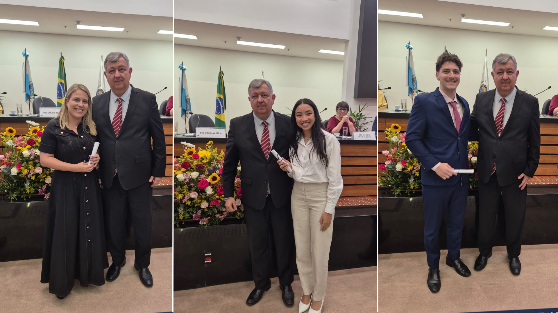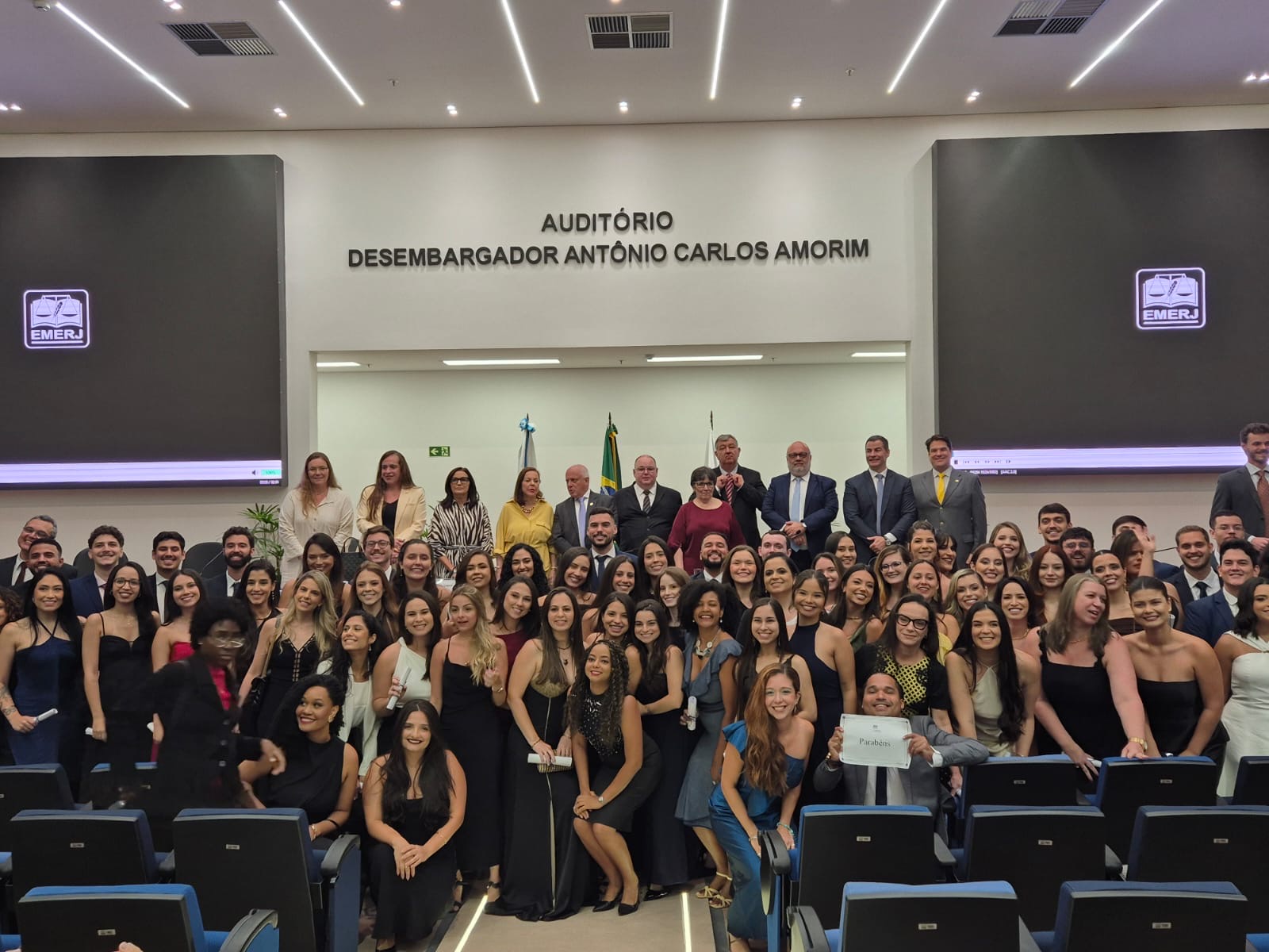 Nessa sexta-feira, 12 de dezembro, a Escola da Magistratura promoveu a cerimônia de formatura dos alunos do 2º semestre de 2025 do Curso de Especialização em Direito Público e Privado, no auditório Desembargador Antônio Carlos Amorim.