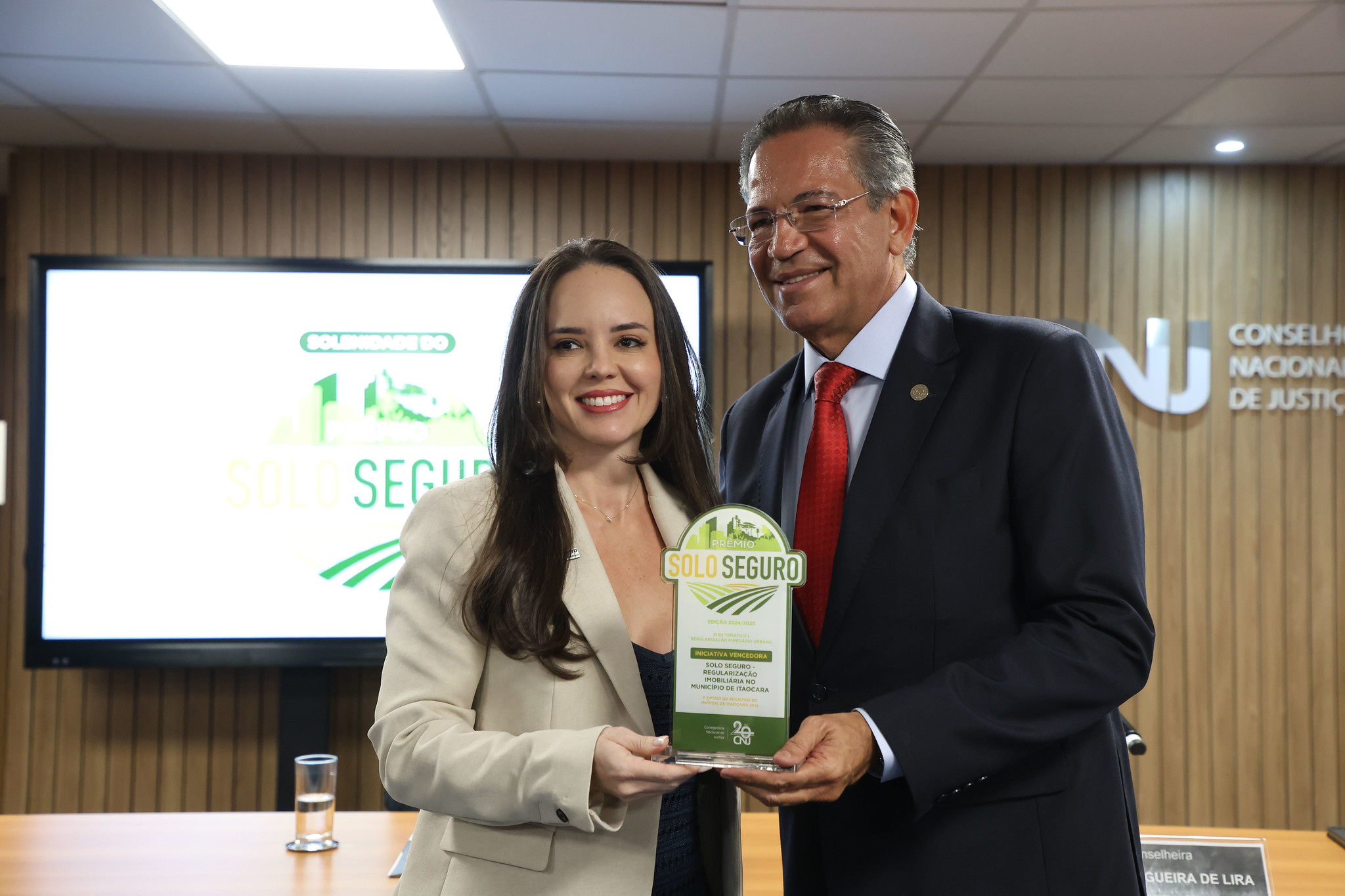 O 1º Ofício de Notas e Registros de Itaocara, do noroeste fluminense, recebeu o Prêmio Solo Seguro, edição 2025, do Conselho Nacional de Justiça, “Regularização Imobiliária”, no Eixo Temático I – Regularização Fundiária Urbana.