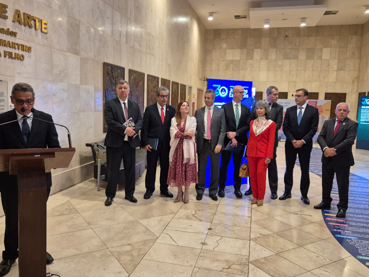 Os magistrados e convidados participaram da inauguração da exposição “Memórias de um novo tempo: 30 anos dos Juizados Especiais”, montada no hall da Lâmina III.