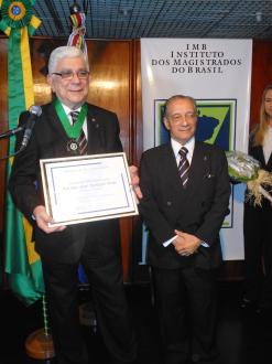 O presidente do TJ, des. Manoel Alberto, fez menção ao presidente titular do IMB, afastado por licença médica, des. Jorge Uchoa de Mendonça. “Esta solenidade só não poderia ser mais emocionante pela ausência da pessoa que idealizou muitas das ações do instituto, o des. Jorge Uchoa”. O corregedor-geral, des. Azevedo Pinto, recebeu a medalha das mãos do 2° vice-presidente do IMB, des. Roberto Cortes e contou: “é uma satisfação receber essa homenagem do desembargador e amigo Roberto Cortes. Já tivemos a oportunidade de trabalharmos juntos em São Gonçalo, na década de 80, o que contribuiu para a construção de uma amizade sólida. O admiro pela serenidade nos julgamentos e o espírito de justiça”.