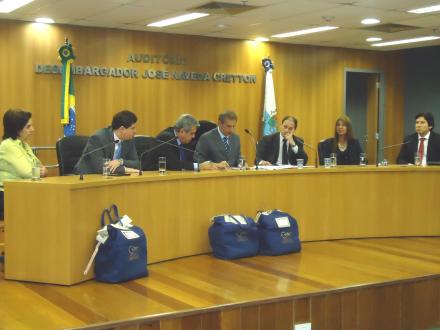 Sob a presidência do Desembargador Heleno Ribeiro Pereira Nunes, a Comissão do LIII Concurso Público para a Outorga das Delegações das Atividades Notariais e/ou Registrais realizou, no último dia 09 (quinta-feira), no Auditório Desembargador José Navega Cretton, Sessão Pública. O objetivo foi a abertura dos envelopes, elaboração das médias e identificação dos candidatos relativamente à recorreção da Prova Escrita e Prática, dos candidatos inabilitados no critério de admissão, bem como das referidas provas dos candidatos habilitados que manifestaram opção por nova correção, nos termos do Aviso TJ nº 55/2013, publicado no DJE de 14/06/2013.