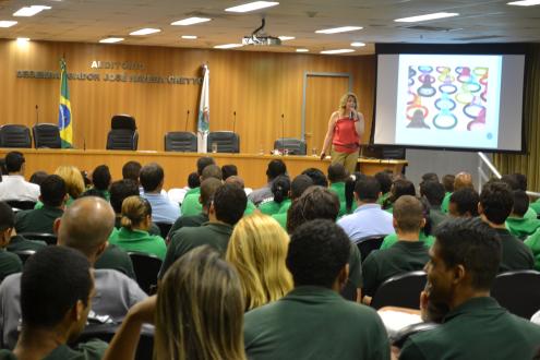 Com o auditório lotado de jovens, participantes dos Programas de Inclusão do Departamento de Promoção da Sustentabilidade-DEAPE, a psicóloga e sexóloga Denise Braz palestrou sobre Responsabilidade Sexual e doenças sexualmente transmissíveis como DST e AIDS. O encontro ocorreu na manhã dessa sexta-feira, 14 de fevereiro.