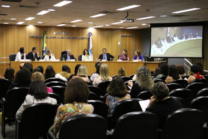 Também participaram da mesa de abertura, os juízes auxiliares da Presidência Antônio Aurélio Abi Ramia e Adriana Ramos de Mello, e as juízas auxiliares da CGJ Regina Lúcia Chuquer de Almeida Costa de Castro Lima e Simone Lopes da Costa. A juíza Renata Gil, eleita na última segunda-feira, 23, nova presidente da Associação dos Magistrados do Estado do Rio de Janeiro (Amaerj), também compareceu à solenidade, realizada no auditório Desembargador José Navega Cretton, no 7º andar do Fórum Central.
