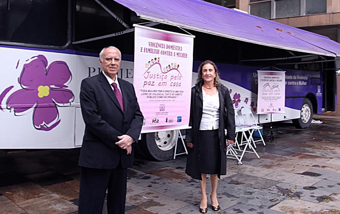 Começou nesta segunda-feira, dia 30, a terceira edição da “Semana da Justiça pela Paz em Casa”, uma campanha nacional idealizada pela ministra Cármem Lúcia, do Supremo Tribunal Federal (STF), aderida pelo Tribunal de Justiça do Estado do Rio de Janeiro (TJRJ). O presidente do TJRJ, desembargador Luis Fernando Ribeiro de Carvalho, e corregedora-geral da Justiça, desembargadora Maria Augusta Vaz, prestigiaram a abertura do evento que aconteceu em frente ao prédio do Fórum Central, no centro da capital fluminense. Durante esta semana, o ônibus do Projeto Violeta ficará estacionado, com profissionais do I e V Juizados de Violência Doméstica e Familiar contra a Mulher da Capital realizando trabalho de conscientização à população no combate à violência de gênero.