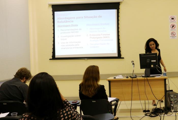 Encerrou nesta sexta-feira, dia 8, o curso de entrevista forense com crianças vítimas de violência sexual, promovido pela Corregedoria Geral da Justiça do Rio de Janeiro e coordenado pelo Núcleo de Depoimento Especial de Crianças e Adolescentes (Nudeca). Participaram da capacitação psicólogos, assistentes sociais e comissários de Justiça do Tribunal de Justiça do Rio. Com duração de três dias (de 6 a 8 de abril), as aulas do curso foram ministradas pelas psicólogas do Tribunal de Justiça do Distrito Federal, Marília Lobão e Raquel Guimarães, e o Psiquiatra infanto-juvenil, Palmyr Virgínio da Silva Junior, especialistas no assunto.