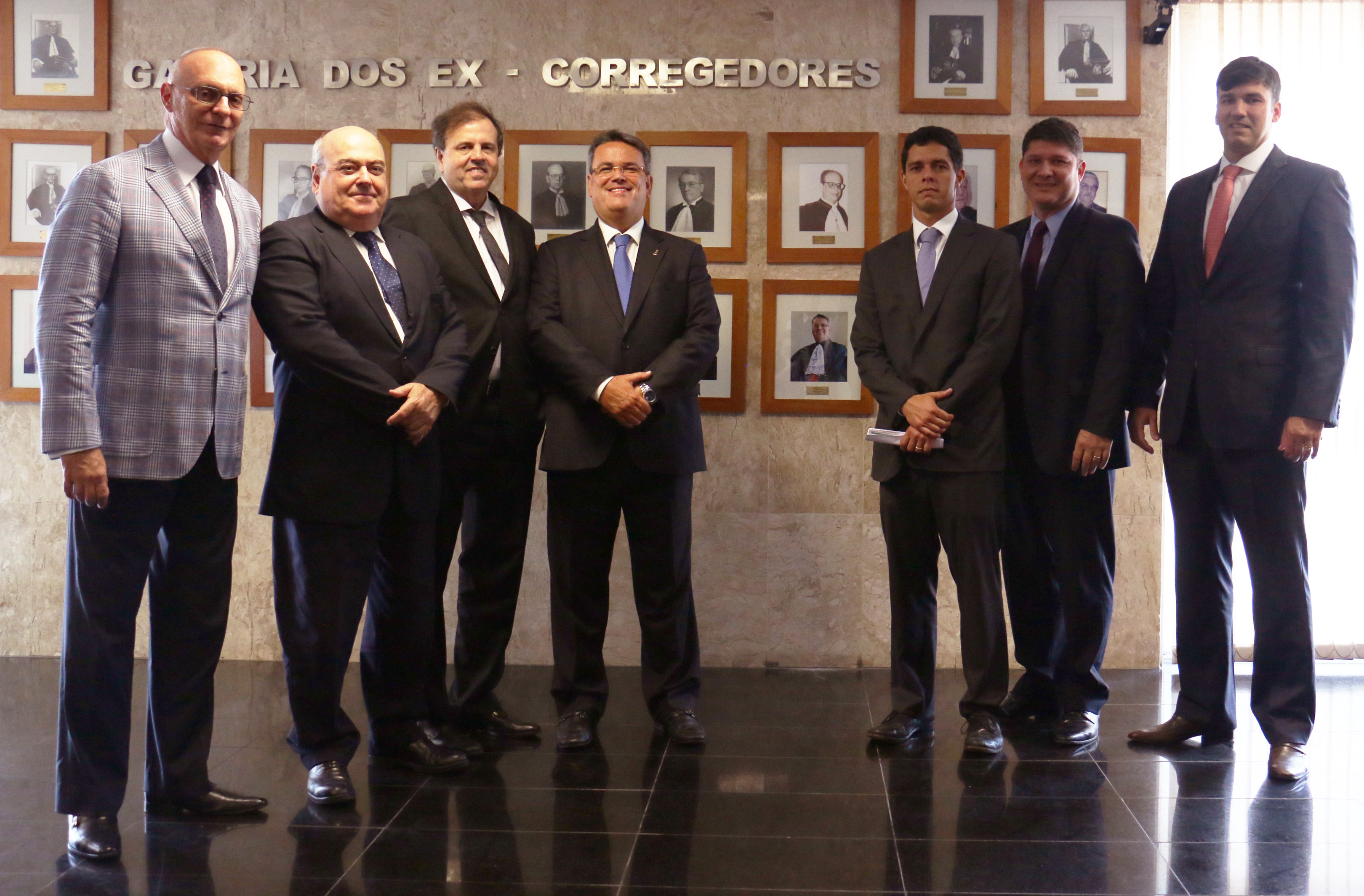 Uma rápida cerimônia marcou hoje (31/1) à tarde a inauguração do retrato do desembargador Claudio de Mello Tavares na galeria dos Ex-Corregedores-Gerais da Justiça do Estado do Rio de Janeiro, que fica na sala anexa ao Auditório Desembargador José Navega Cretton. Os seis juízes auxiliares da CGJ no biênio 2017/2018 – Afonso Henrique Barbosa, Leandro Loyola, Marcius Ferreira, Leonardo Grandmasson, Luiz de Mello Serra e Luiz Canabarro – compareceram, assim como a mãe e a esposa do Corregedor, Maria Teresa e Glaycianne, e servidores de todos os setores da CGJ.