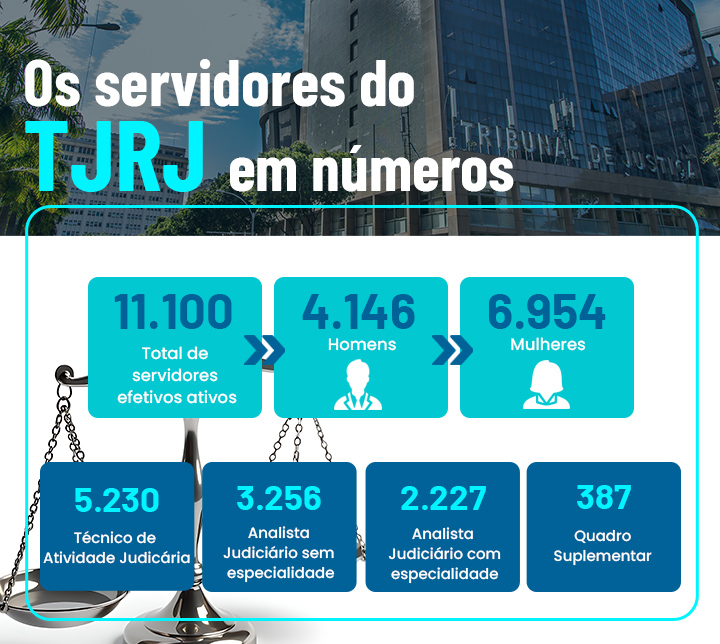 Com formações, trajetórias e experiências diversas, os servidores do TJRJ desempenham funções essenciais, atuando em várias frentes: dos cartórios de varas às áreas administrativas, das equipes técnicas de apoio psicossocial aos setores de tecnologia, comunicação e gestão, formando um corpo de profissionais essencial ao bom funcionamento da Justiça fluminense. São eles que asseguram a continuidade dos serviços, o suporte aos magistrados e o acolhimento ao cidadão que busca a Justiça no dia a dia para resguardar seus direitos.