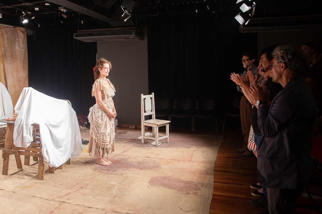 Público aplaude de pé a atriz após o fim do espetáculo