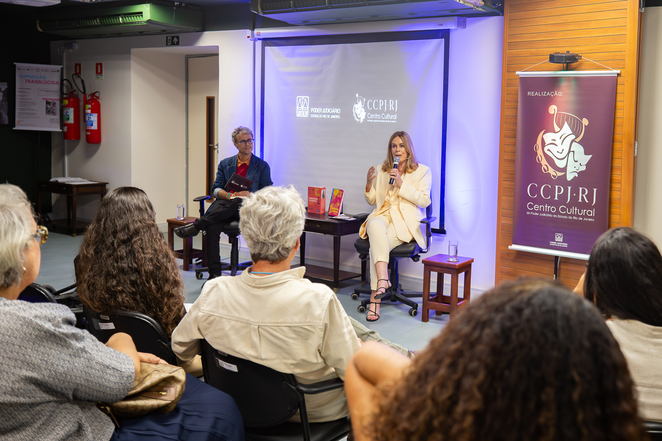 A historiadora Mary Del Priore, ao lado do servidor do TJ Wanderlei Lemos, durante evento do CCPJ realizado nessa quarta, 25