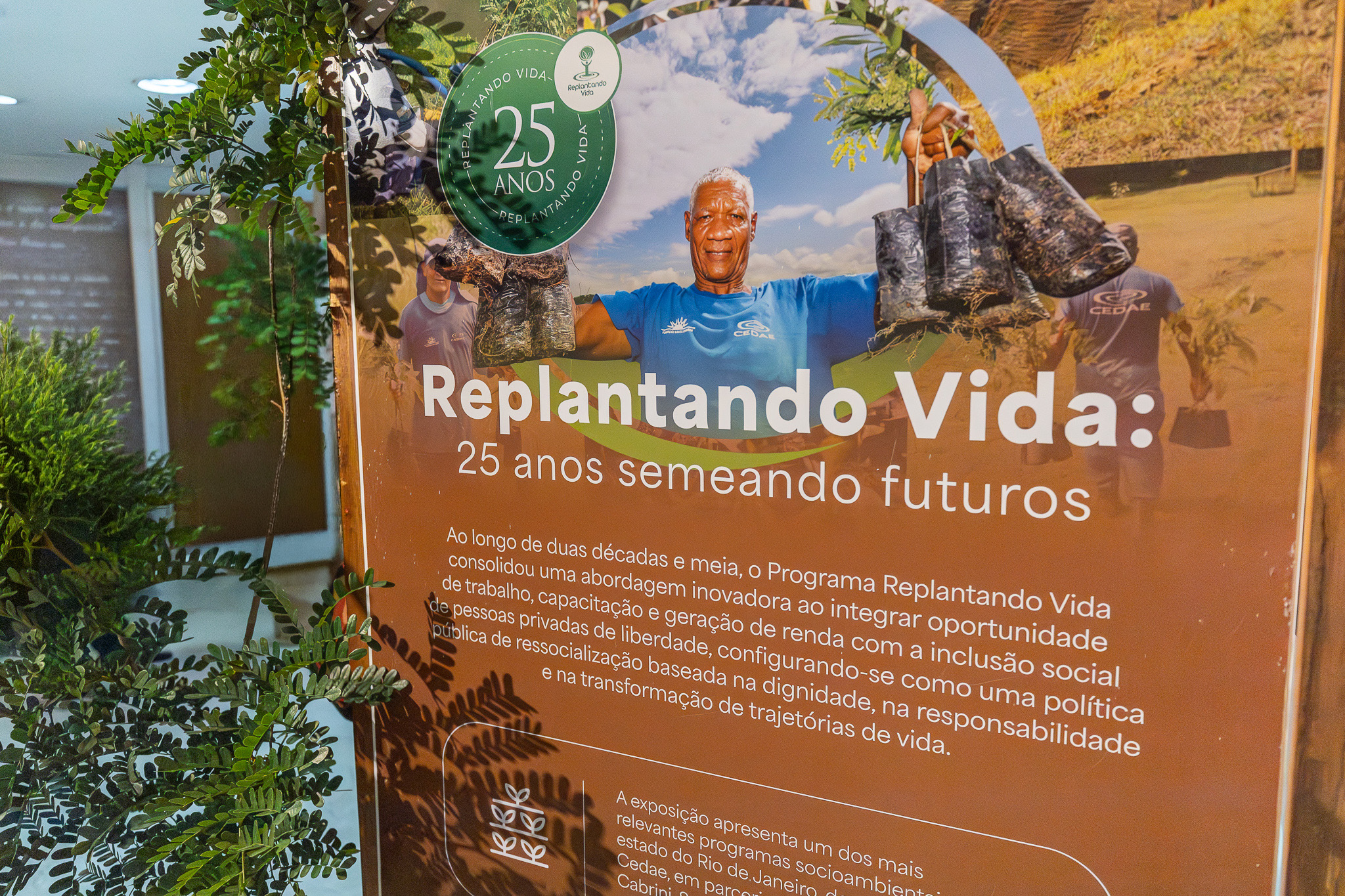 A mostra fotográfica "Replantando Vida – 25 Anos Semeando Futuros" celebra uma política pública que se tornou referência ao unir ressocialização e restauração ambiental. Realizado em parceria com a Vara de Execuções Penais (VEP), a Fundação Santa Cabrini e a Secretaria de Estado de Administração Penitenciária (Seap), o programa é hoje o maior empregador de mão de obra prisional do Rio de Janeiro, contando com cerca de 550 trabalhadores ativos.