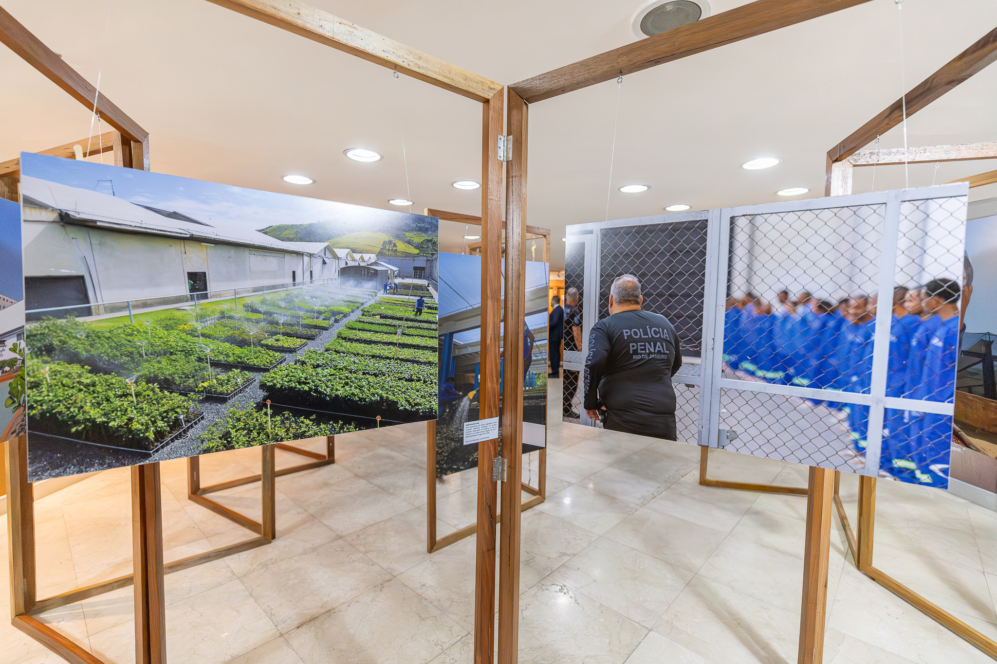 A exposição detalha a cadeia produtiva estruturada no âmbito do programa. Além do reflorestamento, que inclui desde a coleta de sementes até o plantio e manutenção, os participantes atuam na fabricação de uniformes, manutenção predial, construção civil e apoio operacional. O programa conta ainda com três viveiros instalados em unidades prisionais, garantindo que mesmo aqueles que ainda não têm acesso ao trabalho externo possam participar das atividades e receber capacitação profissional.