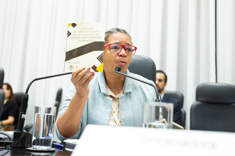 Além dos dados e propostas institucionais, o encontro também foi marcado por relatos que evidenciaram, na prática, os desafios enfrentados pelas famílias. Durante a participação de organizações parceiras na discussão, a professora Catarina Heralda Ribeiro da Silveira, representante da Rede de Atenção a Pessoas Afetadas pela Violência de Estado (Raave), relatou a morte de seu filho, de 21 anos, durante uma operação policial em Nova Iguaçu, na Baixada Fluminense, e informou que o caso continua como inquérito, não tendo virado processo.