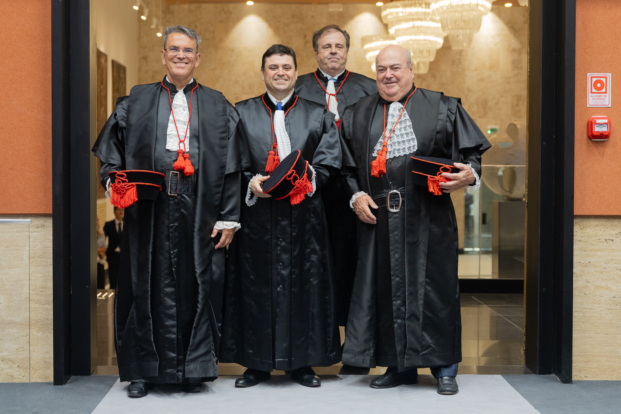 Presidente do TJRJ, desembargador Ricardo Couto de Castro posa ao lado dos novos desembargadores Guilherme Pedrosa Lopes (à esquerda) e João Guilherme Chaves Rosas Filho (à direita)