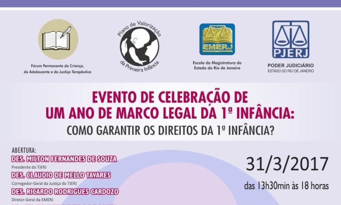 A Escola da Magistratura do Rio de Janeiro (Emerj) promove, dia 31 de março, o Seminário “Como Garantir os Direitos da Primeira Infância”, em comemoração ao primeiro ano de vigência da Lei Federal 13.257, que criou uma série de incentivos à promoção do desenvolvimento integral das crianças, desde o nascimento até os seis anos de idade.