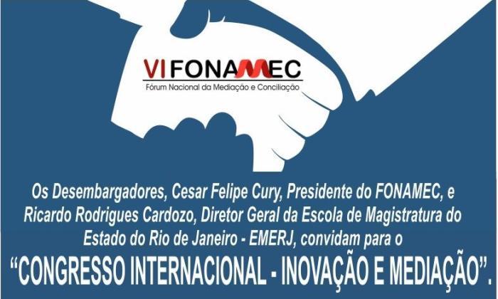 O I Congresso Internacional sobre Inovação e Mediação acontecerá nos dias 7 e 8 de março, durante a realização do VI Fórum Nacional de Mediação e Conciliação (Fonamec), e terá como principais eixos de discussão temas como Online Dispute Resolution, Inteligência Artificial, Desenho de Sistemas de Disputas, Dispute Boards e Compliance. O Fonamec teve sua primeira edição em dezembro em 2014 com o objetivo de promover discussões e revelar boas práticas para aprimorar os métodos consensuais de solução de conflitos por meio do intercâmbio de experiências.