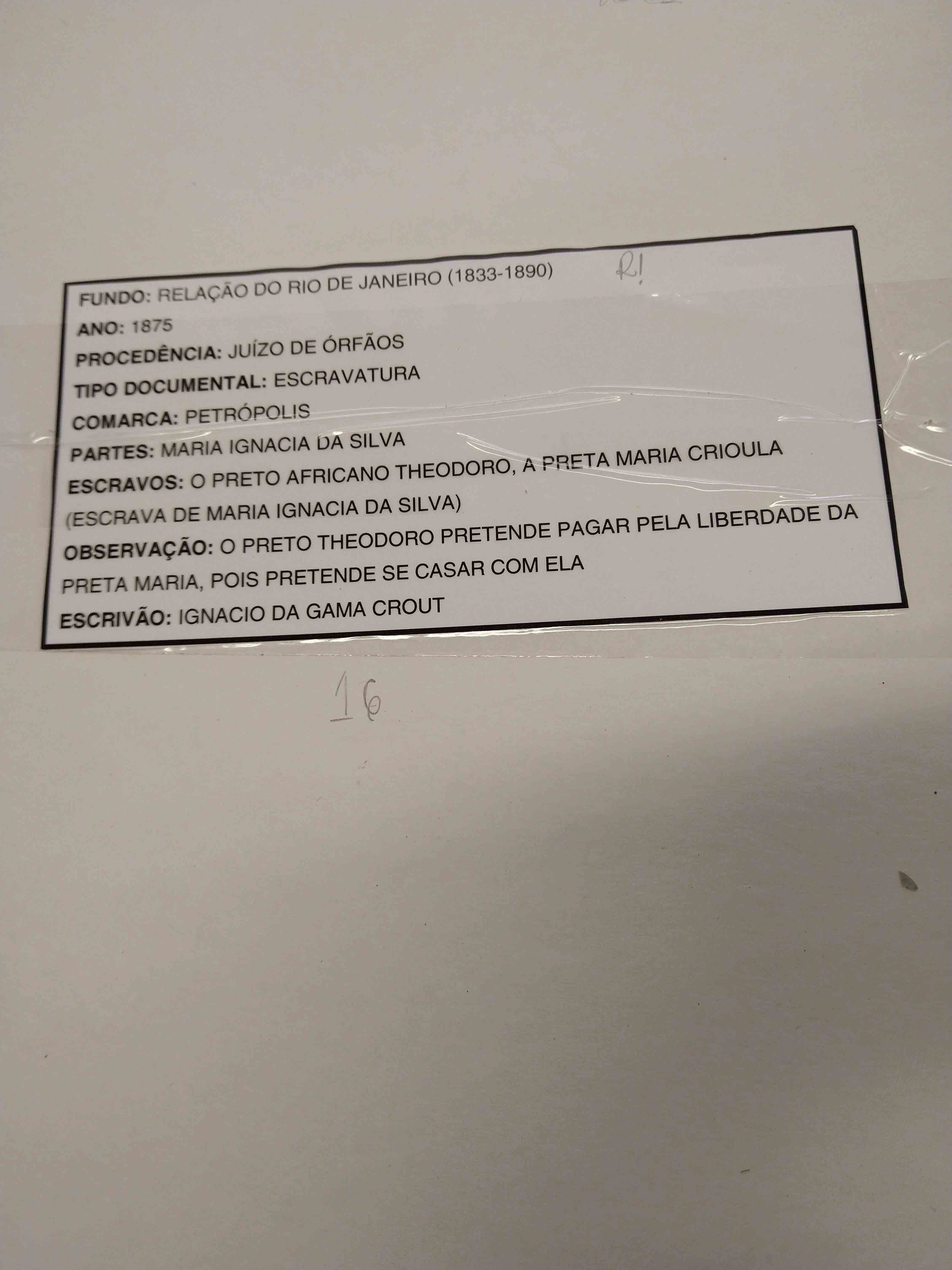 Assim, chegaram aos dias de hoje documentos que contam, na prática, episódios que construíram - e seguem construindo -, ao seu tempo, a história do país, como o processo, de 1875, em que está registrado a intenção do 'preto africano Theodoro de pagar pela liberdade da escrava preta crioula Maria, escrava de Maria Ignacia da Silva', para casar-se com ela.