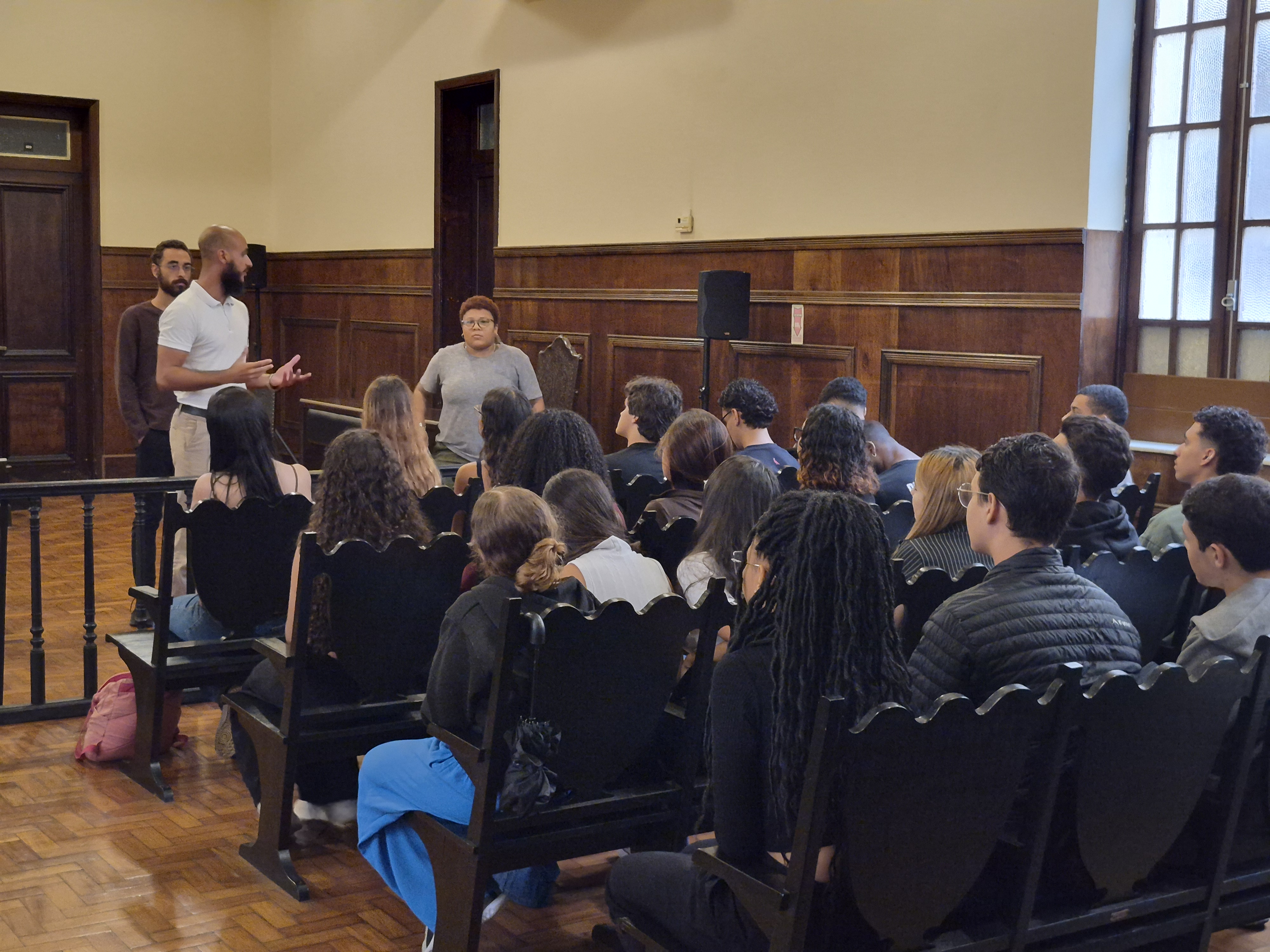 Alunos calouros do curso de Direito da UFF visitaram, na tarde desta quarta-feira (11/03), o Museu das Justiça de Niterói. A iniciativa foi parte do projeto universitário Coletivo Direito Popular da UFF, e organizada por alunos veteranos. Eles foram recebidos pela equipe de historiadores e educativos para a visita mediada pelas dependências e arredores do prédio e, assim, fizeram a ponte entre Direito e História.