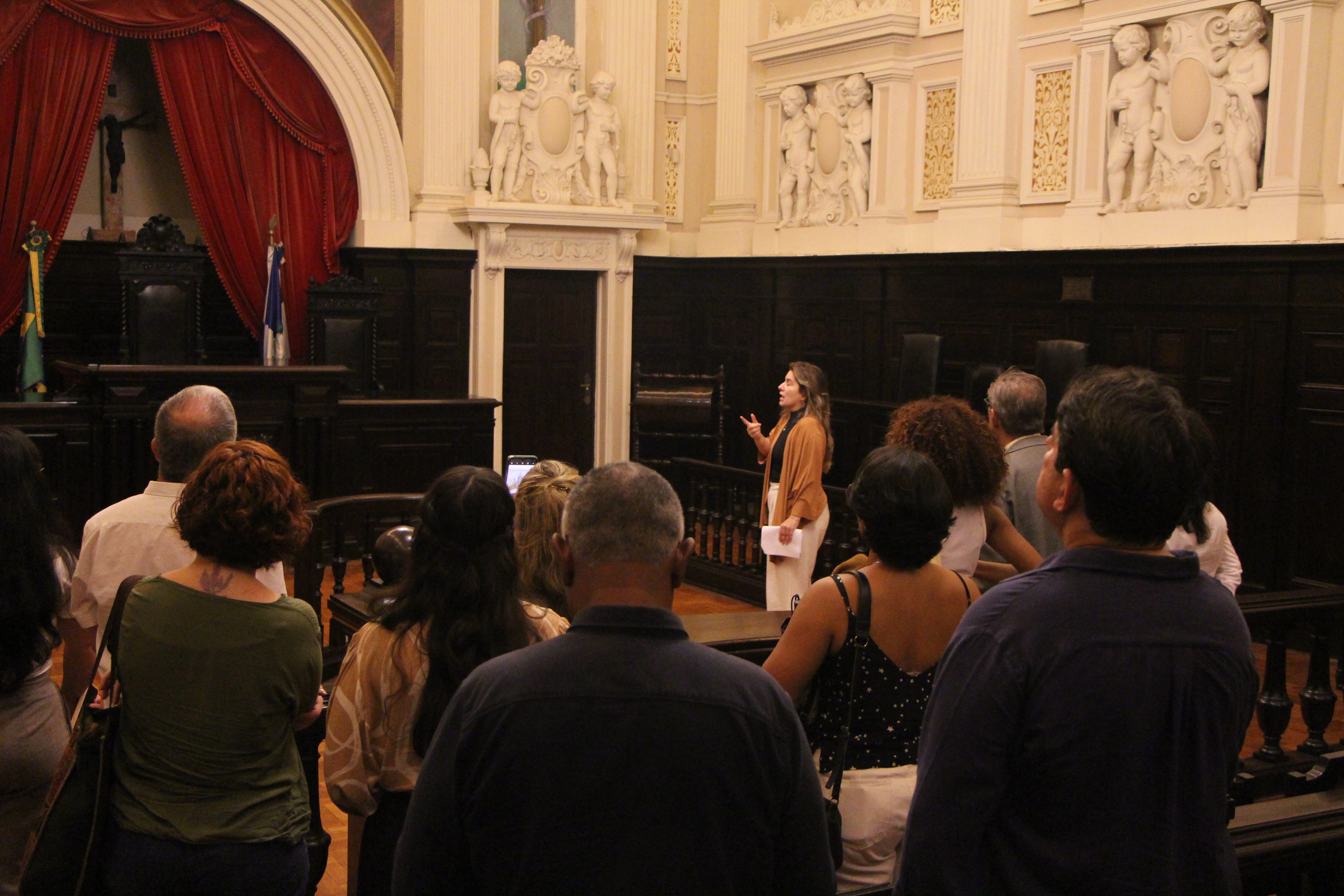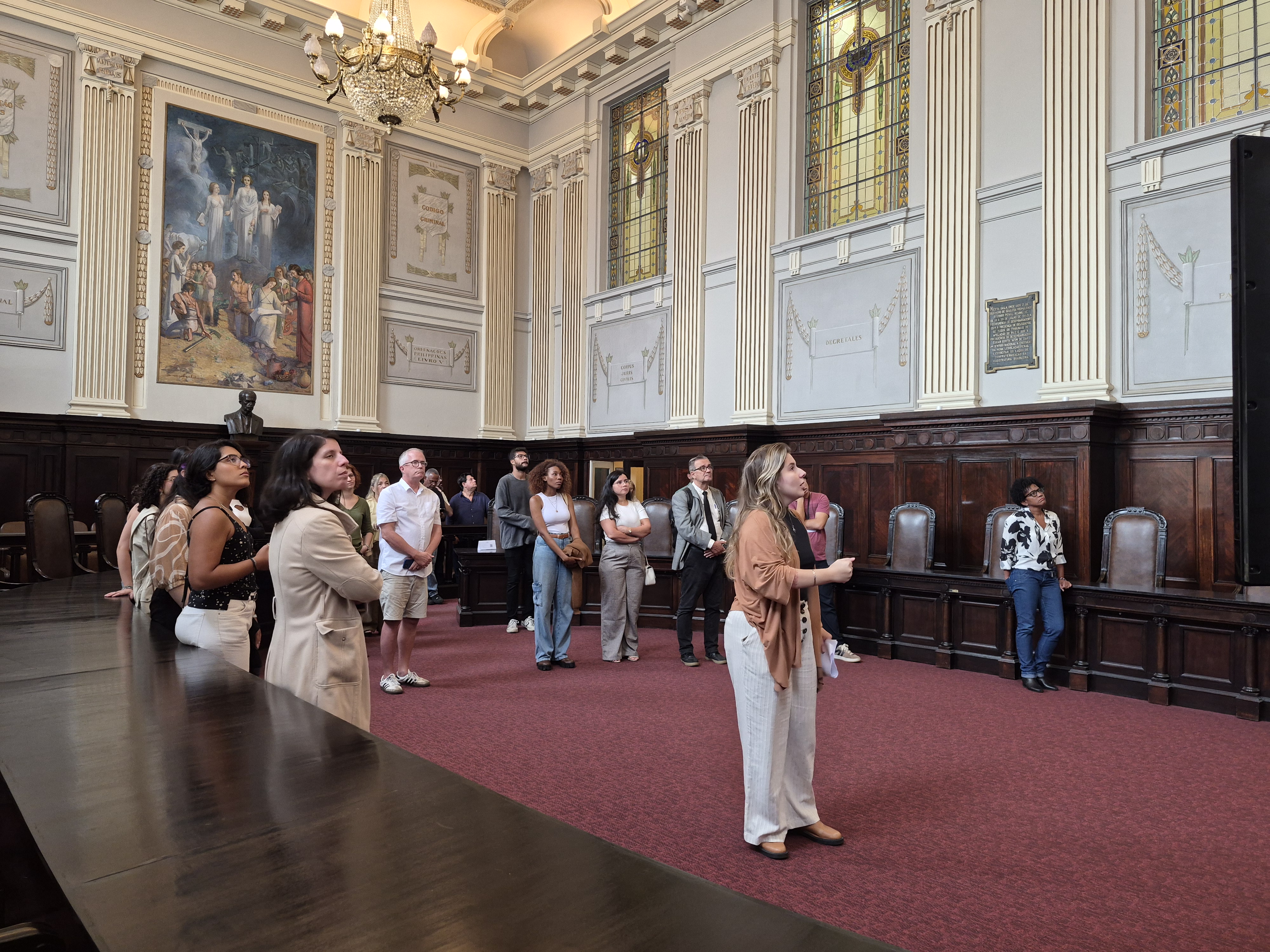 O Museu da Justiça realizou, na tarde desta quinta-feira (12/03), mais uma edição da visita "Desvendando a Arquitetura do Museu", pensada e guiada pela historiadora Lydia de Carvalho. A visita tem como objetivo investigar os elementos artísticos e históricos que constituem os corredores, salões e caminhos do antigo Palácio da Justiça. Os convidados foram convidados a prestar atenção em detalhes, nuances da composição arquitetônica para melhor refletir sobre temporalidades, sentidos e significados escondidos nos conjuntos ou perdidos por efeito do tempo.