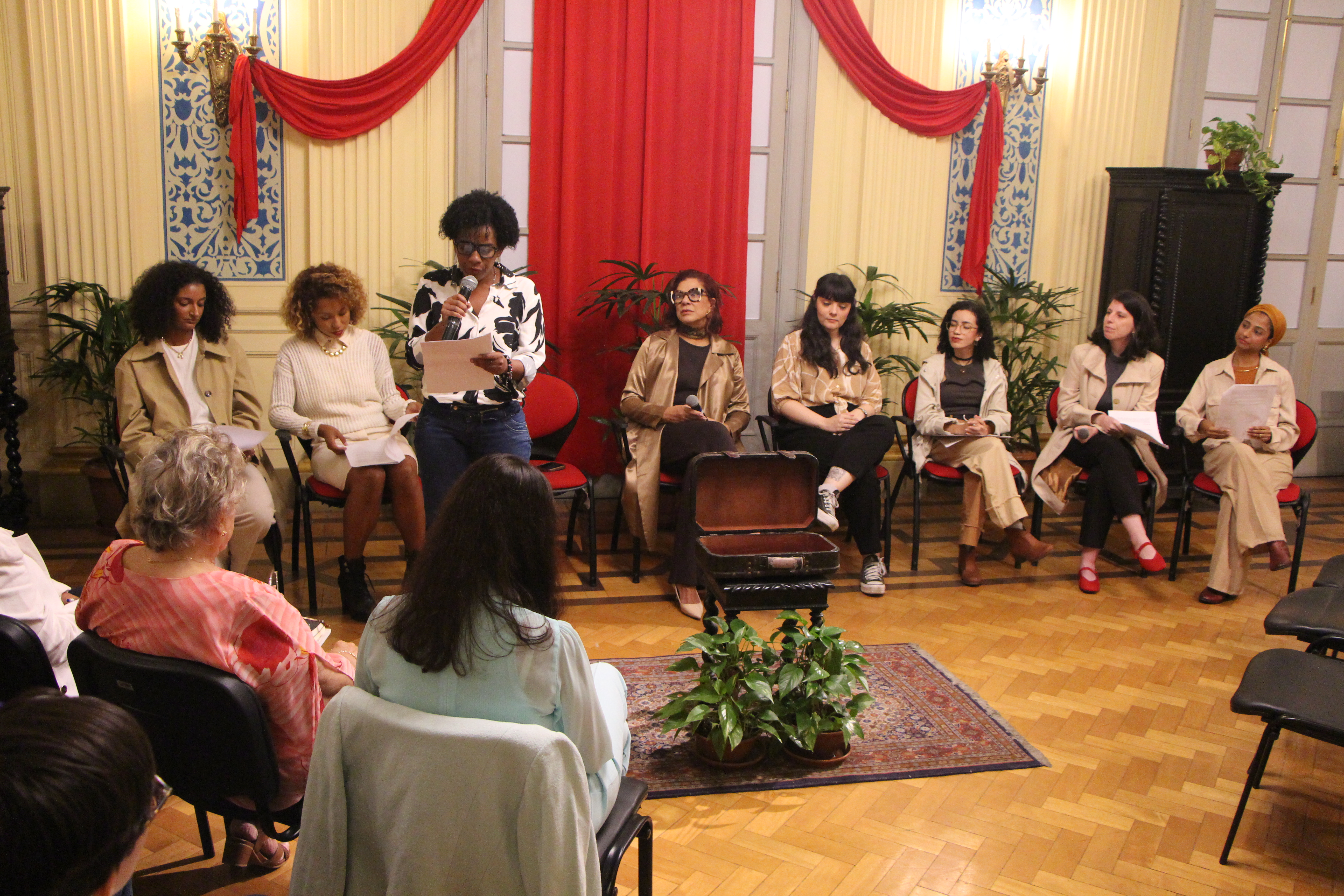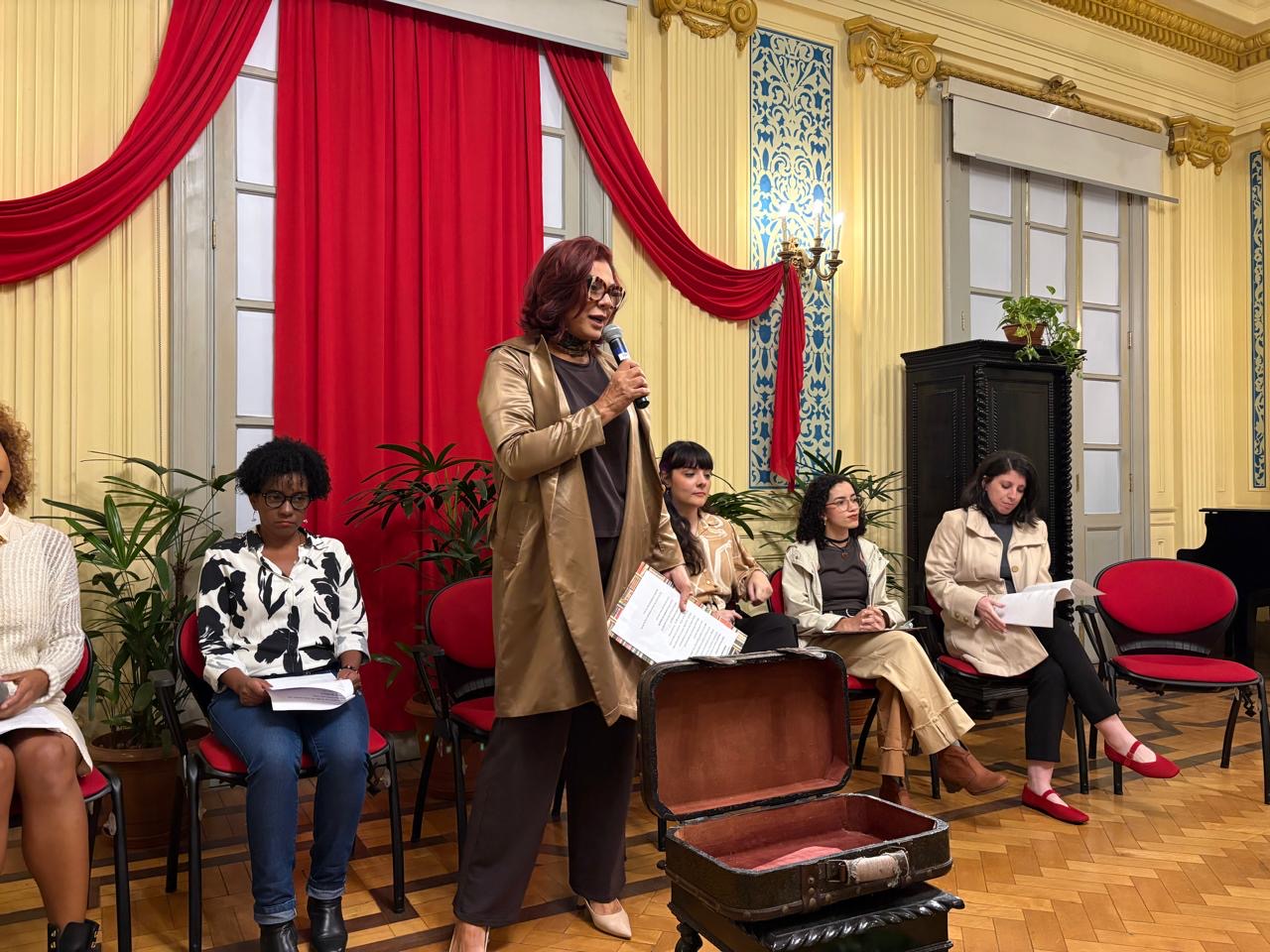 A equipe formada pelo servidor e historiador Gilmar de Almeida Sá, pelos historiadores Diego Soares Bertuci, Adriana da Costa Camelo, Julia Vieira Penelis, e pela técnica de arquivos Ana Lúcia Angelo e acompanhou a cerimônia de inauguração da Sala Mariana Crioula. O espaço foi pensado e dedicado à preservação da memória da líder quilombola e à valorização da história e do papel das mulheres na resistência negra no Vale do Café. A atividade integrou também a entrega da obra de restauração do Antigo Fórum da Casa do Barão do Ribeirão, sede do Escritório Técnico do Iphan na região.
