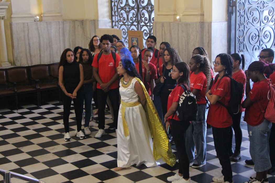O Museu da Justiça realizou, nesta quarta-feira (18/03), mais uma edição da visita mediada teatralizada com as deusas Maat e Themis. O grupo recebido foi da Associação Beneficente São Martinho, instituição que atualmente atende mais de 2 mil crianças e adolescentes em situação de vulnerabilidade na cidade do Rio de Janeiro.