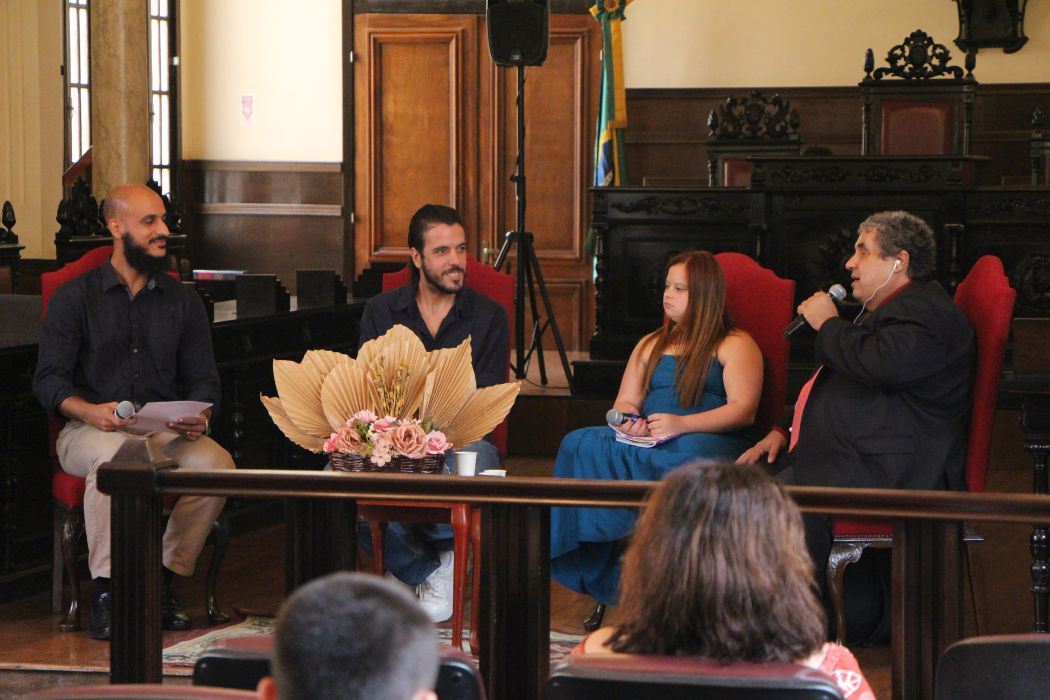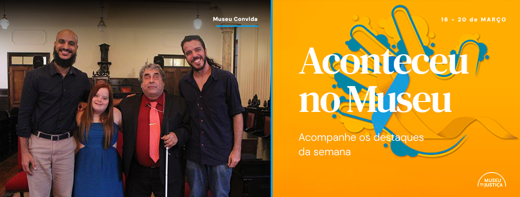 O Museu da Justiça de Niterói realizou, nesta quinta-feira, mais uma roda de conversa, dessa vez com o tema "Diálogos sobre inclusão: escuta, direitos, diversidade e protagonismo", em alusão ao dia mundial da síndrome de down (21/03). Estiveram presentes Márcio Aguiar, diretor do departamento de acessibilidade e inclusão Social do Tribunal de Justiça do Estado do Rio de Janeiro, Maria Linhares, atriz do instituto Teatro Novo e Aldo Frey, psicólogo com atuação em teatro terapêutico na APAE de Niterói. A mediação ficou por conta do arte-educador Whiverson Reis.