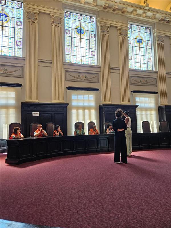 O grupo percorreu os espaços históricos do Museu da Justiça e visitou as exposições temporárias, incluindo a mostra 'Não Cale a Sua Voz!', que reúne imagens impactantes, com fotografias de mulheres vítimas de violência, e seus relatos, que se tornaram símbolos de resistência e inspiração na luta pela dignidade feminina