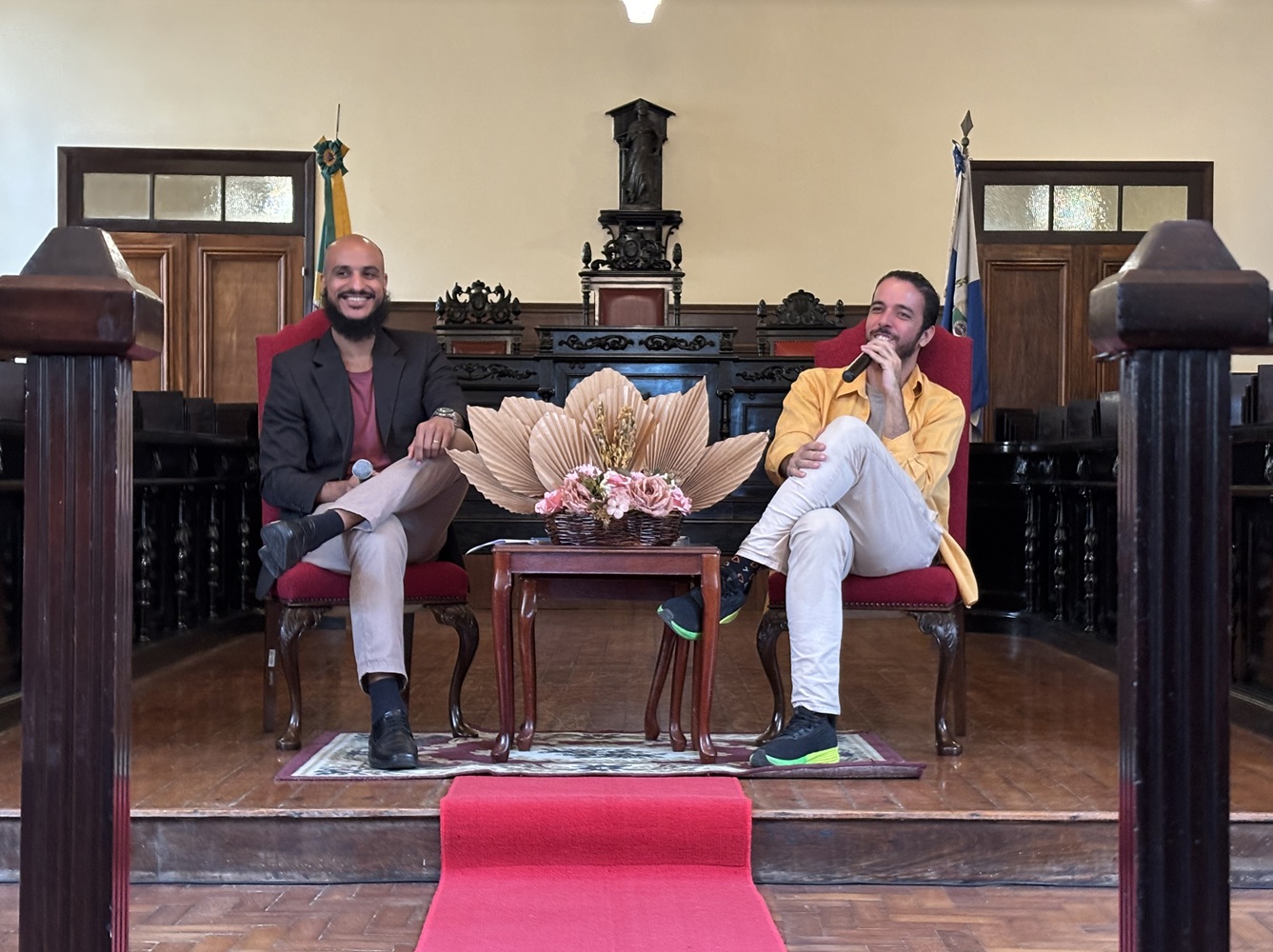 O projeto Troca de Livros recebeu, nesta terça-feira (29), no Museu da Justiça de Niterói, a escritora e ativista cultural Débora Moreno. Alunos do 3º ano da Escola Municipal Alberto Francisco Torres, acompanhados pelo professor Thiago Machado, assistiram atentamente a atividade lúdica e imaginativa proposta pela autora.