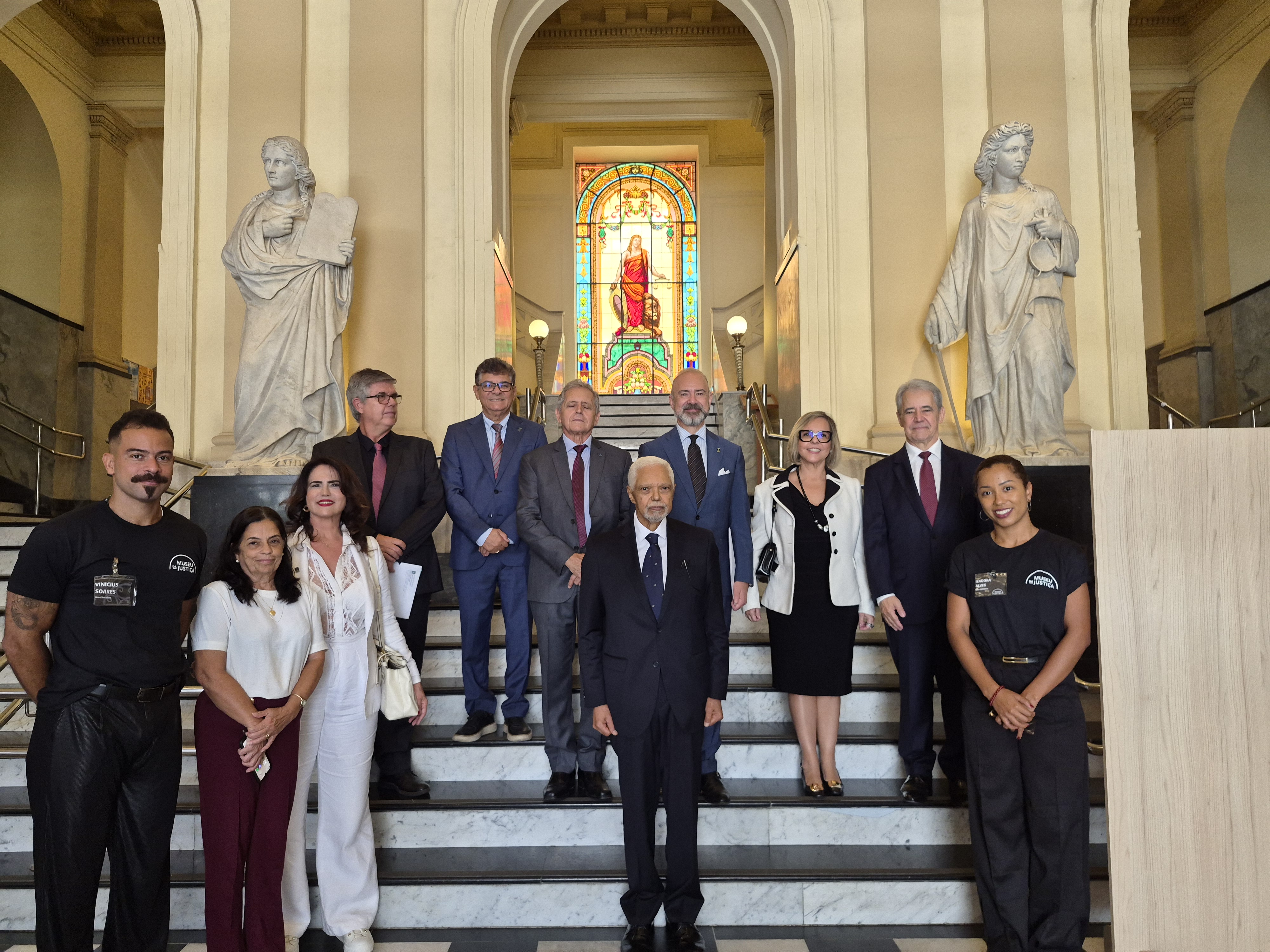 O Museu da Justiça recebeu, nesta quinta-feira, o cônsul da Espanha no Brasil, D. Fernando Fernández-Arias Minuesa, para uma visita mediada aos espaços históricos do Antigo Palácio da Justiça. A atividade, organizada pela ANDES, integrou uma iniciativa de estreitamento das relações institucionais e culturais entre Brasil e Espanha, promovendo o intercâmbio de experiências e o diálogo em torno da memória do Poder Judiciário. Para o Museu da Justiça, mais uma excelente oportunidade de divulgação das exposições em curso para além dos muros do TJRJ.