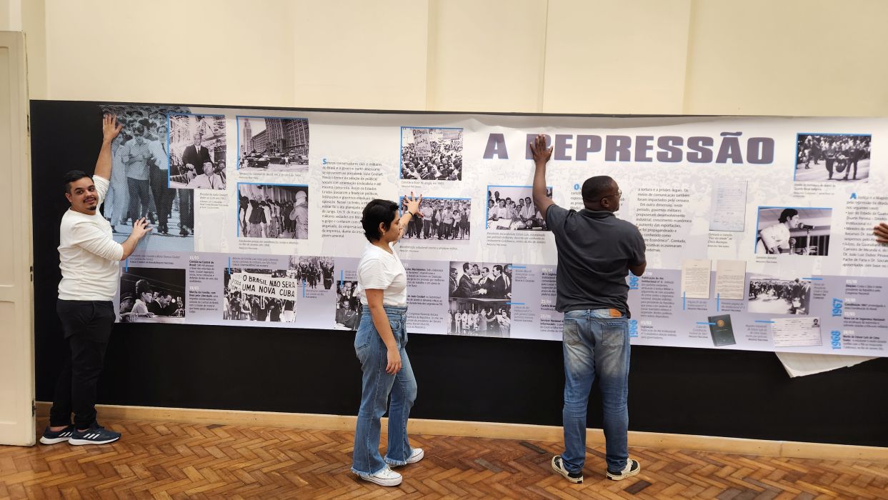 A exposição “Democracia na Balança (1964–2024)”, realizada em parceria com o Programa de Pós-Graduação em História da Universidade Salgado de Oliveira, tem como objetivo apresentar os inúmeros desafios enfrentados na construção e na manutenção da democracia no Brasil. Com um recorte especialmente pertinente, articula os 60 anos do golpe civil-militar de 1964 aos recentes acontecimentos de 8 de janeiro de 2023 — eventos que evidenciam a constante fragilidade da democracia brasileira.