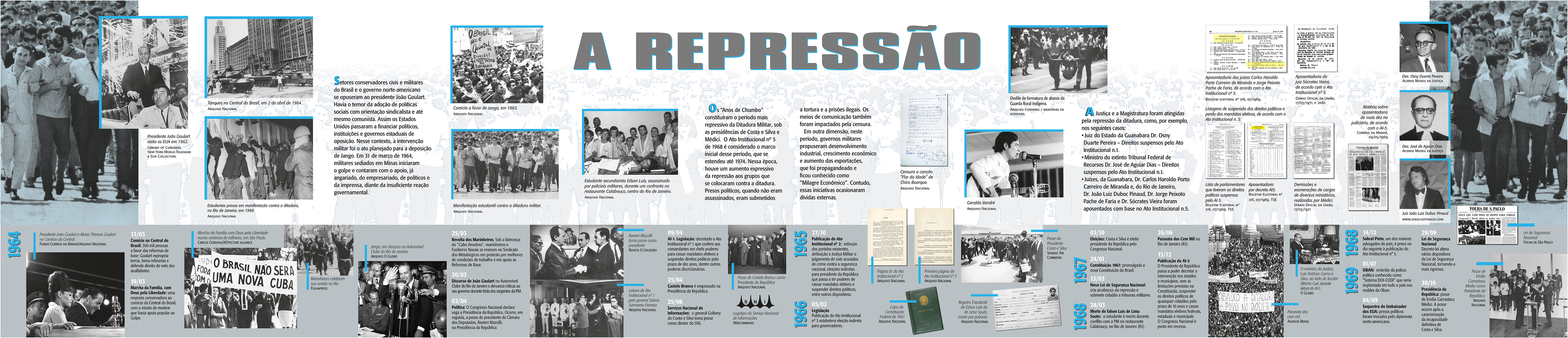 A democracia brasileira enfrentou inúmeros desafios, sendo o de 1964 um dos maiores. Neste ano, o presidente da República João Goulart foi deposto por um golpe civil-militar que imergiu o País numa ditadura que duraria 21 anos. Trabalhadores, políticos, militares legalistas e magistrados tiveram suspensos os seus direitos de cidadãos, entre os quais muitos foram submetidos a torturas e prisões, enquanto outros impelidos ao exílio.