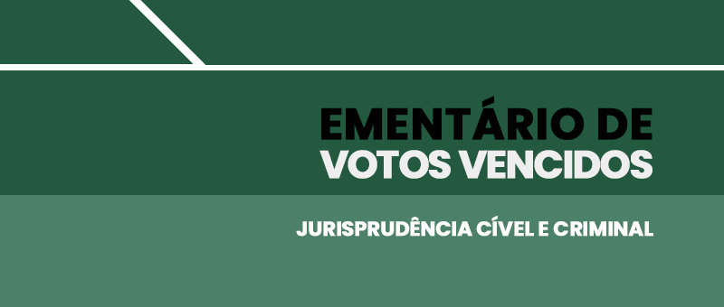 Na nova edição, foram selecionados votos vencidos cíveis e criminais que abordam os seguintes temas: ocorrência de prescrição intercorrente em execução fiscal de IPTU; competência para julgamento de ação relativa à decisão de banca de concurso público; remessa dos autos à contadoria judicial para cálculo do ITCMD; adequação de vencimentos ao Piso Nacional do Magistério Público; renovação de contrato de locação comercial; uso exclusivo de elementos nominativos de marca; descontos contratuais sobre verba de natureza alimentar; prazo prescricional de cobrança; majoração de condenação por falha na prestação de serviço; concessão de gratuidade de justiça; ação rescisória; direitos autorais; responsabilidade civil do Estado; roubo majorado por concurso de agentes e emprego de arma de fogo; progressão de regime prisional; nulidade de processo administrativo disciplinar; modificação da dosimetria penal; revogação de prisão preventiva e substituição por medidas cautelares.