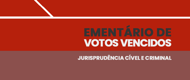 Nessa nova edição, foram selecionados votos vencidos cíveis que abordam os seguintes temas: anulação de ato administrativo disciplinar que excluiu Policial Militar dos quadros da corporação; nulidade do TOI lavrado; recusa de home care por plano de saúde com óbito do paciente; execução individual de sentença coletiva; contrato de empréstimo e superendividamento; cartão de crédito consignado; execução fiscal; intervenção cirúrgica de prótese peniana inflável; aplicação de tarifa progressiva ao fornecimento de água. Dentre os votos vencidos criminais, destacam-se decisões referentes aos seguintes tópicos: incomprovação do dolo específico de venda de produto impróprio para consumo; corrupção passiva de Policial Militar; autoria incomprovada de furto; reconhecimento de nulidade de prisão preventiva; inocorrência de ilicitude probatória no processo por crime de tráfico ilícito de entorpecentes.