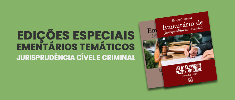 No Ementário Especial Cível, tendo em vista os temas Liberdade de Expressão e Direito à Imagem, foram selecionados acórdãos com as seguintes abordagens: matéria jornalística sobre ex-usuário de drogas; ofensa à honra de pessoa pública; comentários ofensivos em programa de televisão; publicação ofensiva no Twitter; postagem em rede social com propósito difamatório; descrédito da atividade comercial em vídeo no YouTube; cobrança de dívida em rede social; uso de imagem para fins comerciais sem autorização; greve sindical e liberdade de expressão; matéria jornalística sobre nepotismo; direito ao esquecimento em notícias veiculadas na internet. No Ementário Especial Criminal, o assunto em destaque foi a Lei n° 13.964, de 24 de dezembro de 2019, também conhecida como Pacote Anticrime. Para a composição desse ementário, foram selecionados acórdãos com os seguintes temas: livramento condicional; execução provisória da pena; acordo de não persecução penal; progressão de regime prisional; prisão em flagrante convertida de ofício em preventiva; estelionato e representação da vítima; porte ilegal de arma de fogo; violação à contemporaneidade na prisão preventiva.