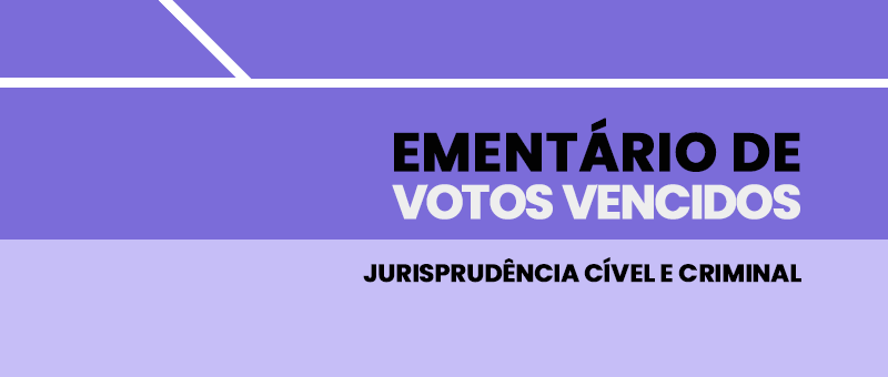 Nessa nova edição, foram selecionados votos vencidos cíveis que abordam os seguintes temas: cálculo da tarifa progressiva sobre serviços de água e esgotamento sanitário; agravo interno em ação rescisória; acórdão prolatado por Turma Recursal com violação a julgado do STJ; determinação para a Turma Recursal julgar recurso, levando em consideração os precedentes propostos; condenação ao pagamento de honorários de sucumbência por perda de objeto; inocorrência da teoria do desvio produtivo; condenação do Estado ao pagamento de honorários em favor da Defensoria Pública; exclusão da penalidade de prisão de funcionário de concessionária de serviço público; impossibilidade de declinação de ofício de competência territorial pelo magistrado; não concessão da tutela provisória de fornecimento de equipamentos que não constam do rol de cobertura mínima obrigatória da ANS; ação civil pública objetivando a condenação de município a se adequar ao Plano de Contingência ao Novo Coronavírus; responsabilidade do estado por prisão preventiva com posterior absolvição; cobrança de tarifa de esgotamento sanitário por serviço prestado apenas parcialmente . Dentre os votos vencidos criminais, destacam-se decisões referentes aos seguintes tópicos: atipicidade material no crime de porte ilegal de munição de uso restrito; roubo majorado pelo concurso de agentes e emprego de arma de fogo; inocorrência de julgamento contrário à prova dos autos no Tribunal do Júri; indeferimento de prisão domiciliar a mãe de filho menor e suspensão de julgamento para se aguardar a manifestação do MP quanto à possibilidade de oferecimento da proposta de sursis processual.